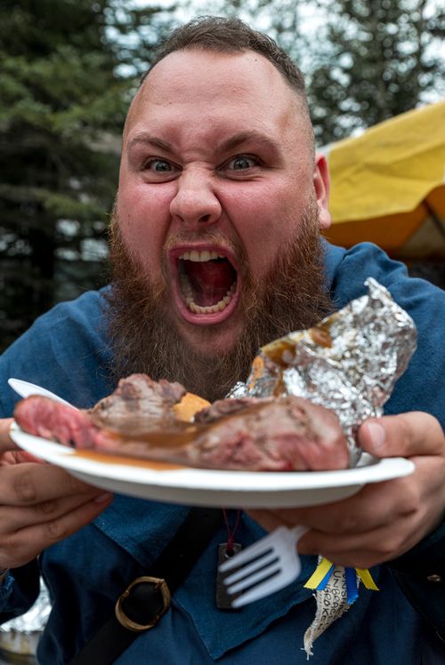 We serve two catered meals per day: breakfast and dinner. The food is very good and there's lots of it! Additionally, we can cater to most dietary restrictions. We love to sit down after a long day of battles and share a feast together.