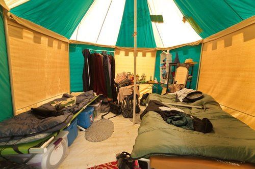 We'll give you a comfy, yet spacious cot, and we'll include bedding: sleeping bag, pillow, and blanket! Everything you need to be warm, dry and sleep well.